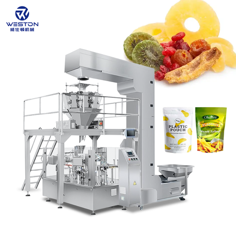 Doypack automático de pie con cremallera, relleno de bolsas, fechas de embalaje, plátano seco, rebanadas de manzana, máquina de embalaje de frutos secos de mango