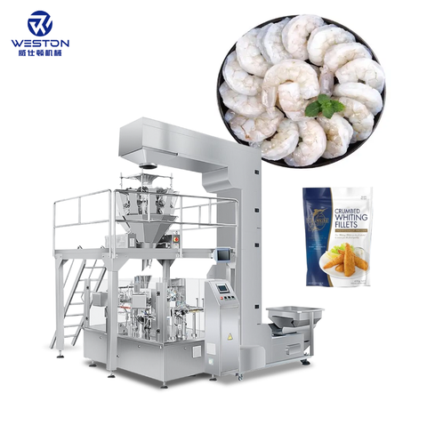 Máquina de embalaje rotativa automática Doypack sellado ensalada de verduras congeladas Bola de masa hervida comida congelada albóndigas de pollo