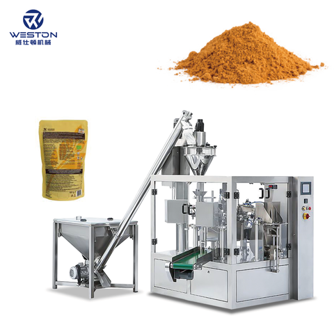 Embalaje automático Doypack relleno prefabricado bolsa comida especias en polvo Masala cúrcuma condimento Chile en polvo máquina de embalaje